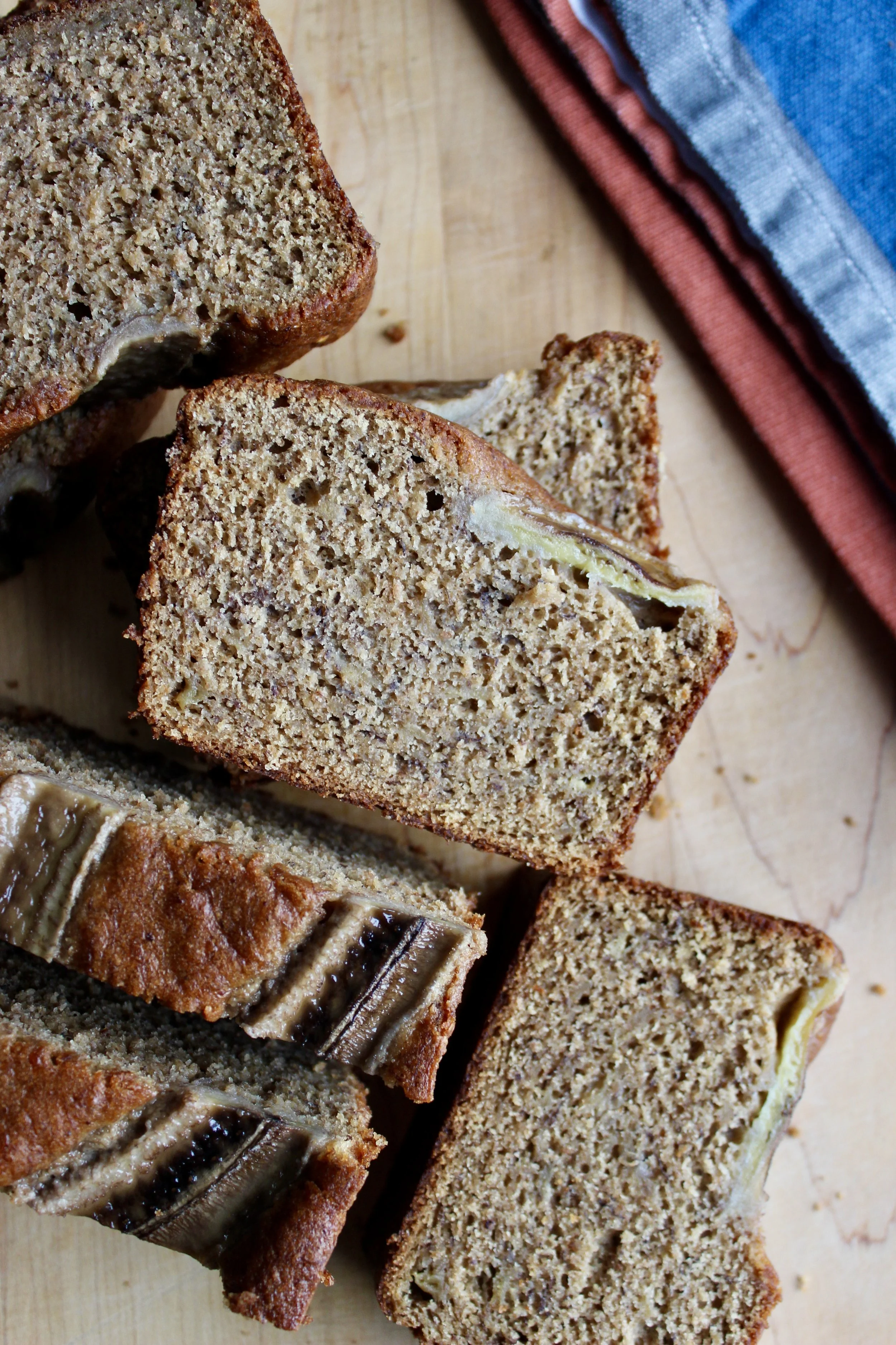 Ingredients: organic bananas, organic einkorn flour, brown sugar, unsalted butter, whole grain sourdough starter {whole wheat flour, whole grain rye flour, filtered water}, eggs, walnuts, organic buttermilk, organic pure vanilla extract, baking soda, kosher salt
